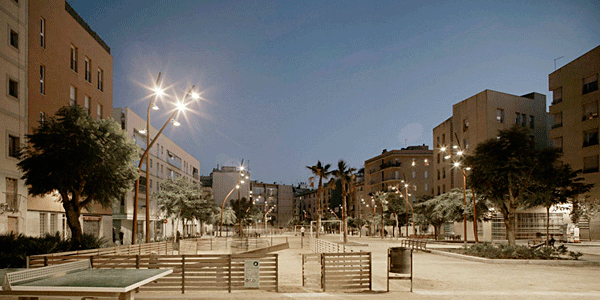 FUL is a street light series with a conical section and variable curvature, providing considerable freedom to optimise their orientation and create a formal result in apparent movement. The tree-like composition of this series enhances its integration into vegetated environments, while the multiplication of the luminaries produces well-distributed and uniform light. Small overlapping luminaries with soft reflected light contrast with the considerable height of the poles, accentuating the distance between the user at ground level and the light sources, creating a sense of walking in starlight. The pillars are in COR-TEN and galvanised steel, with anchorage points for various types of commercial lamps available for outdoor use. The choice and angle of the reflector help to ensure that the light is shed vertically to prevent light pollution. FUL street lights were initially designed in 1998 by architects Jaume Artigues and Pere Cabrera for a lighting project along the Raval watercourse. Escofet first produced the initial series, FUL-12, FUL-10 and FUL-9 in 2001, and then in 2006 extended the collection with the shorter models, FUL-7/9, FUL-7/10 and FUL-5.
