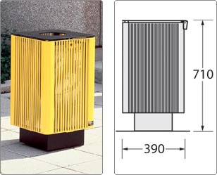 Sineu Graff steel litter bins are manufactured from 2.5mm zinc plated and powder coated steel with sheet steel profiles available in diamond point, perforated or elongated cut out.