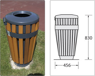 The Metropolis bin forms part of complete furniture ranges which also include seats and benches. All hardwood timber used has been certified as from sustainable sources.