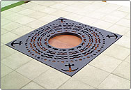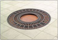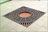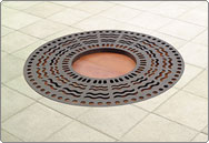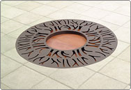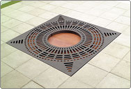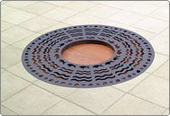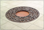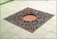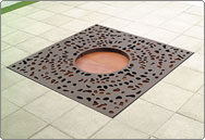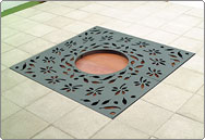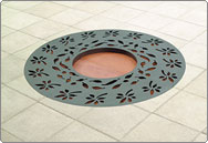 Sheet steel tree grilles with unique, laser-cut, designs for modern and traditional landscapes